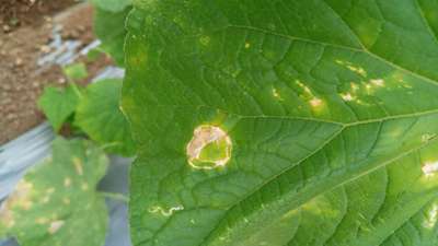 Hi Plantix User Check out if there is anything like Red Pumpkin Beetle Leaf Miner Flies Also initial stage of Downy Mildew of Cucurbits For confirmation purpose please click on the above green hyperlink to get more info 🙂. Thanks for using the plantix community 🙂