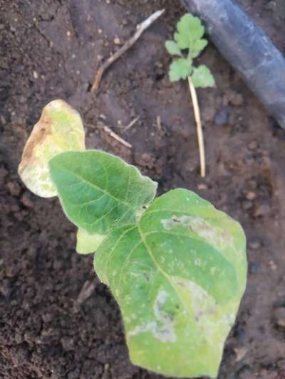 वांग्याची पाने दुमडली आहेत व त्यावर छोटे छोटे पांढरे ठिपके पडले आहेत. यावर उपाय सांगा.