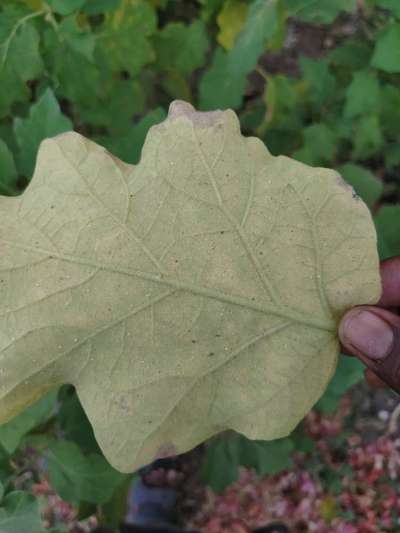 पानावर पाठीमाघे पांढरे पावडर दिसत आहे. झाड पिवळे पडून जात आहे