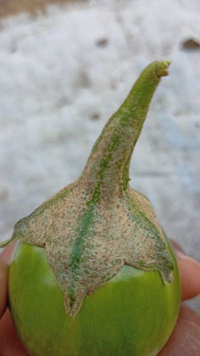 पाने वळकुटी होत आहेत. पांढऱ्या रेषा व कट होतआहेत.
