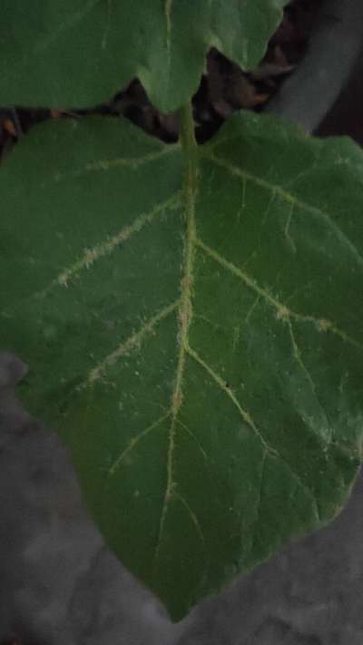 वांग्यावर पांढरे पट्टे दिसत आहेत, पानाखाली छोट्या आकाराचे किडे आहेत, कृपया मार्गदर्शन करावे