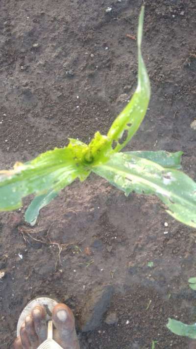 काही पाने सुकली आहेत वाढीतील कोब अळी नी खाला आहे