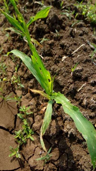 काही पाने सुकली आहेत वाढीतील कोब अळी नी खाला आहे