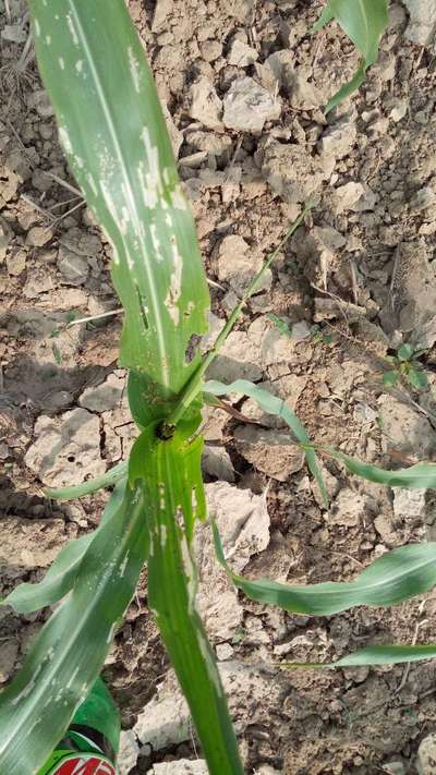 What is reaseon of White colour and cuting of makka ' s leaf please send solution my crops
