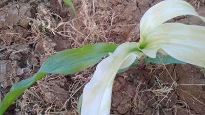 मक्याची पाने हिरवेगार नसुन, भुरकट/पांढरट येतात.