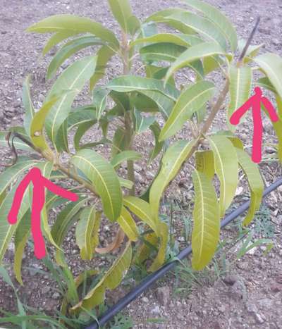 4 ते 5 आंब्याची नवीन पालवी अश्या प्रकारे सुकून जात आहे . काही पानांची पालवी खाऊन कुर्तडली आहे काही दिवसांपूर्वी super phosphate दिले आहे .