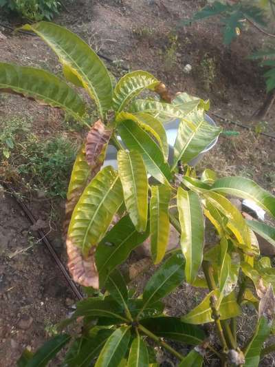 आंबा पाने कडक होऊन.. काळे पडत आहे