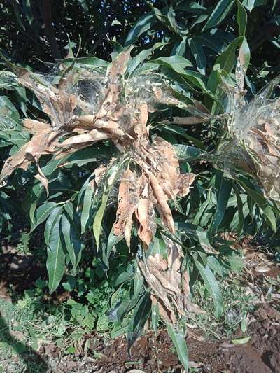 आंब्याचे पान कडक होत आहे। कोवळ्या पानांचा रंग पण पिवळा झाला आहे व त्यावर पांढरी जाळी पडल्यासखे काहीतरी दिसत आहे कृपा करून हे काय आहे ते सांगावे व त्यावरील उपाय पण सुचवावेत ।