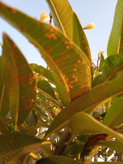 पानांचा रंगबदलला आहे. ठिपके पडून पाने वळत आहेत