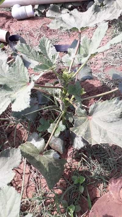 भेंडीची पाणी पिवळी पडले आहेत व किड्यांनी पान खाल्लेले आहेत