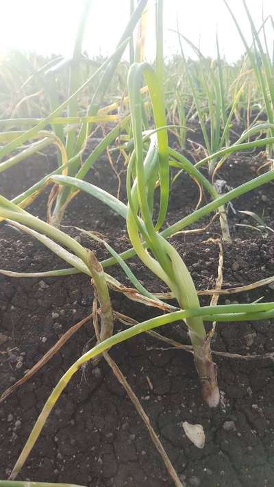 मुळावरच आघात दिसत आहे पुर्ण कांद्याची पात वाकडी झाली आहे काय सुधारेल का उपाय सुचवा