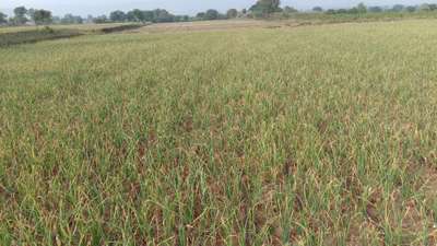 कांदा पाती वरती पाढरे डाग आहे व पात वाकडी आहे