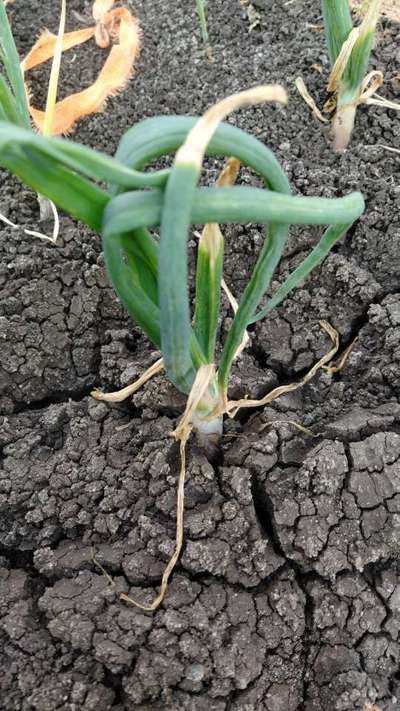 कांद्याची पात वाकडी होता आणि पाढरी छोटी छोटी किड आहेत