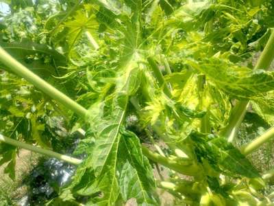 рд╢рд░рдж рдЬреА рд╣реЗ Papaya Leaf Curl рд╡реНрд╣рд╛рдпрд░рд╕ рдЖрд╣реЗред рдПрдХрджрд╛ рд╡реНрд╣рд╛рдпрд░рд╕ рдЖрд▓реНрдпрд╛ рдирдВрддрд░ рдХрд╛рд╣реАрд╣реА рдЙрдкрд╛рдп рдирд╛рд╣реАред рд╕реБрд░реБрд╡рд╛рддреА рдкрд╛рд╕реВрди рд░рд╕ рд╢реЛрд╖рдХ рдХрд┐рдбреАрдВрдЪрд╛ рдкреНрд░рд╛рджреБрд░реНрднрд╛рд╡ рдирд┐рдпрдВрддреНрд░рдгрд╛рдд рдареЗрд╡рдгреЗ рд╣реЗ рдПрдХрдореЗрд╡ рдЙрдкрд╛рдп рдЖрд╣реЗред рдЦрд╛рд▓реАрд▓ рдЙрдкрд╛рдп рдЯреНрд░рд╛рдп рдХрд░реВрди рдмрдШрд╛ рд╡реНрд╣рд╛рдпрд░рд╕рдЪреНрдпрд╛ рдирд┐рдпрдВрддреНрд░рдгрд╛рд╕рд╛рдареА рдЙрдкрд╛рдп рд╕рд╛рдордЧреНрд░реА: 1. рдХрд╛рдЧрджреА рдлреВрд▓ рдЪреЗ рдкрд╛рди: 10 рдХрд┐рд▓реЛ 2. рдЧреЛрдореВрддреНрд░: 5 рд▓рд┐рдЯрд░ 3. рдкрд╛рдгреА: 20 рд▓рд┐рдЯрд░ рдХрд╛рдЧрджреА рдлреВрд▓ рдЪреЗ 10 рдХрд┐рд▓реЛ рдкрд╛рди рдЦрд▓рдмрддреНрддреНрдпрд╛рдд рд╡рд╛рдЯреВрди 5 рд▓рд┐рдЯрд░ рдЧреЛрдореВрддреНрд░ + 20 рд▓рд┐рдЯрд░ рдкрд╛рдгреНрдпрд╛рдд рдорд╛рддреАрдЪреНрдпрд╛ рдорд╛рдард╛рдд 3 рджрд┐рд╡рд╕ рддреЛрдВрдб рдЭрд╛рдХреВрди рдареЗрд╡рд╛ред рдЪреМрдереНрдпрд╛ рджрд┐рд╡рд╢реА рдордВрдж рдЖрдЪреЗрд╡рд░ рд╣реЗ рджреНрд░рд╛рд╡рдг рдЕрд░реНрдзрд╛ рд╣реЛрдИ рдкрд░реНрдпрдВрдд рддрд╛рдкрд╡рд╛ рд╡ рдердВрдб рдХрд░реВрди 10 рдорд┐рд▓реА рдкреНрд░рддрд┐ рд▓рд┐рдЯрд░ рдЪреА рдлрд╡рд╛рд░рдгреА рдШреНрдпрд╛ рд╡ рдПрдХ рдЖрдард╡рдбреНрдпрд╛ рдирдВрддрд░ рдкрд░рдд рдлрд╡рд╛рд░рдгреА рдХрд░рд╛ред рдзрдиреНрдпрд╡рд╛рдж