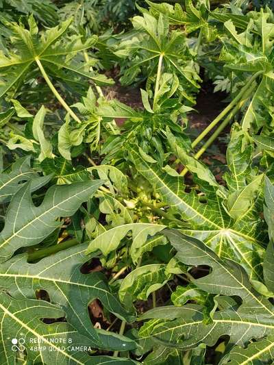 पानाचा रंग पिवळा पडलेला आहे. झाडाची पाने आकसल्या सारखे दिसत आहेत