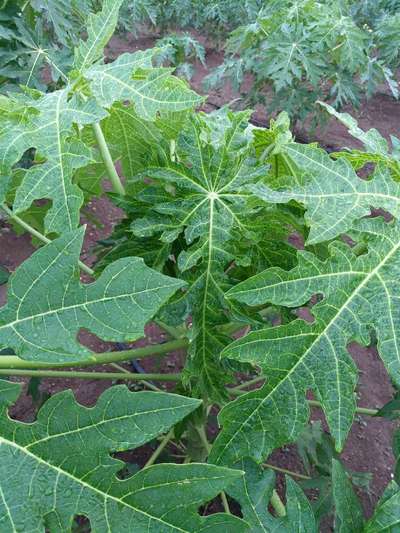 स्वप्नील बहुतेक Papaya Mosaic Virus चि सुरुवात आहे। वरील हिरव्या लिंक वर क्लिक करा जेणेकरून आपण प्लँनटिक्स लायब्ररी मध्ये या समस्या विषयी सविस्तर माहिती व नियंत्रक उपाय योजना जाणून घ्याल ☺☺