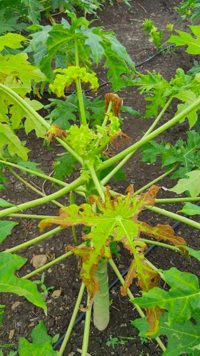 पपई पिकाचे वरील शेंडे पूर्णतः जमा झाले गुच्छ सारखे झालेत उपाय