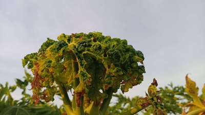 पपई चा शेंडा गुंडाळत आहे