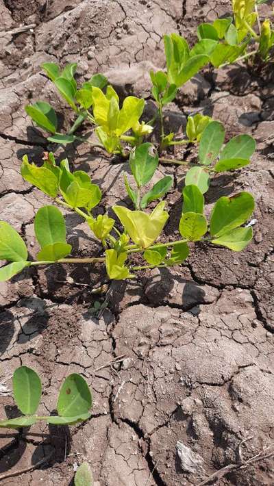 भुईमूग पाने पिवळी दिसतात. तीन आठवड्यांचे पीक आहे.