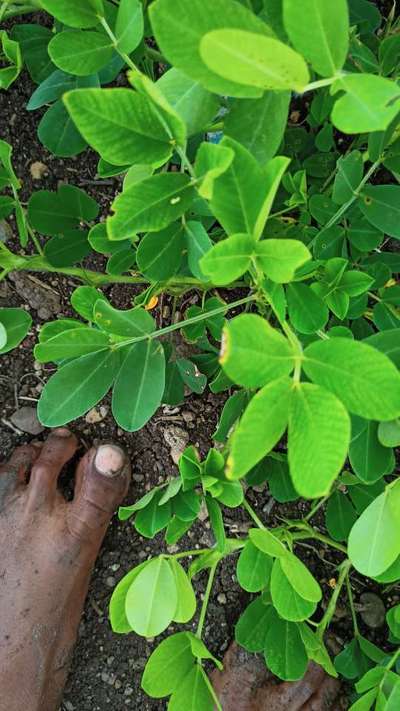 भुईमुगाची वाढ थांबली आहे आणि पाने थोडीशी पिवळी होत आहेत