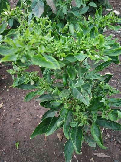 मिर्चीच्या पानांना असे झाले आहे. मिर्चीला फुलं येतात पण मिर्ची येत नाहीत. किंवा खुपच लहान येतात.