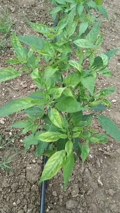 Hi Anil Kamble Looks like Magnesium Deficiency Also there is an initial stage of Chilli Leaf Curl Virus For more details please click on the above green hyperlink. Thanks for using the plantix community 🙂