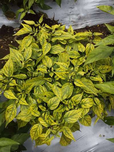 पाने पिवळी पडत आहेत आणि मिर्चि अकड़त आहे ,मुळे कूजत आहेत व बुर्शी पन थोडीसी दिसत आहे