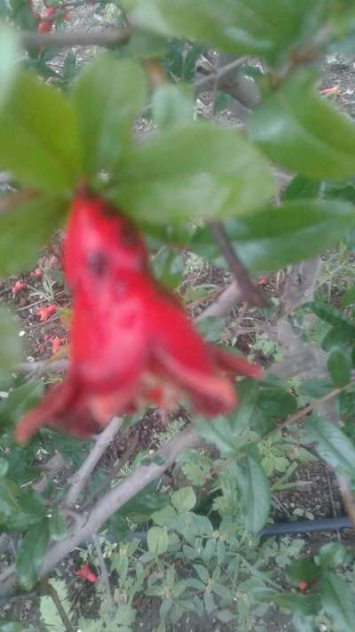 डाळिंब चे पाने गोलाकार दिसत आहे आणि फूलांचे पण प्रेमानं कमी आहेत