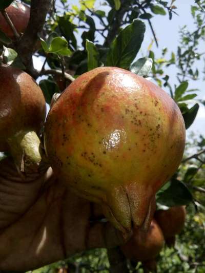 Vishal Anthracnose of Pomegranate आहे। कॉपर + कसू B किंवा किटाझिन + Z78 किंवा फोलियो गोल्ड2 मिली प्रति लिटर चि फवारणी घ्या