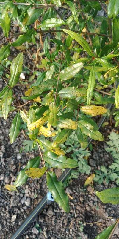 Sanket Bora Anthracnose of Pomegranate आहे। कॉपर + कसू B किंवा किटाझिन + Z78 किंवा फोलियो गोल्ड2 मिली प्रति लिटर चि फवारणी घ्या