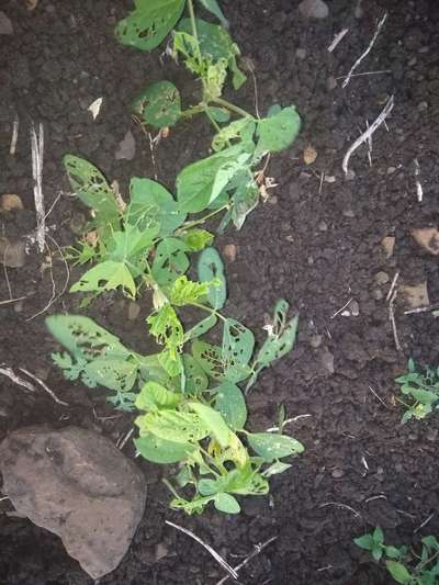 सागर गाडेकर हे Flea Beetles चा प्रदर्भाव आहे। डेल्टामेथ्रीन चि फवारणी घ्या