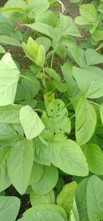 सोयाबीन च्या झाडाची पाने कुर्तरड्या सारखे झाले, तसेच गोल गोल छिद्र पडलेले आहेत उपाय सांगा
