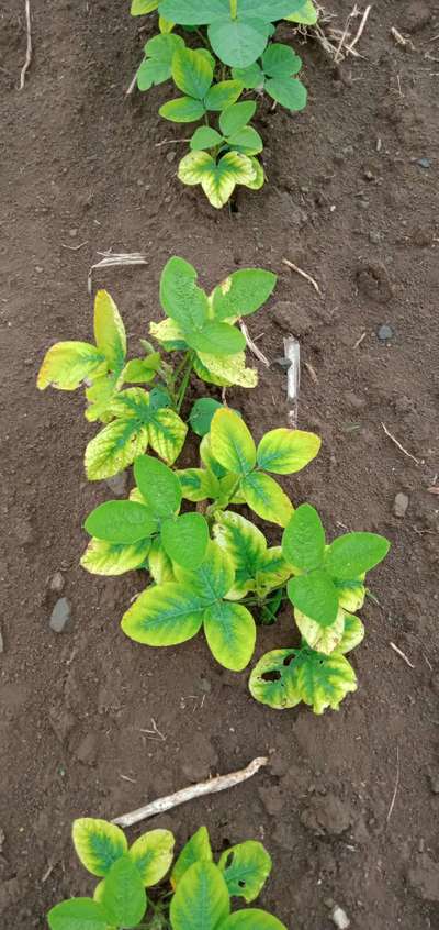 सोयाबीनची पाने अशी पिवळी झाली आहेत .आणि वाढीसाठी कोणते औषध फवारणी करावे..