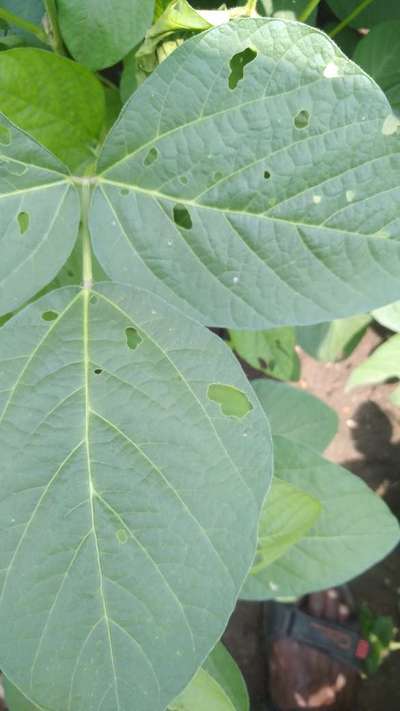 सोयाबीन च्या झाडाची पाने कुर्तरड्या सारखे झाले, तसेच गोल गोल छिद्र पडलेले आहेत उपाय सांगा