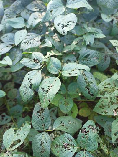 काही पाने सोयाबीनचे फाटले आहेत कोणते औषध मारावे फुल पण लागलेला आहे