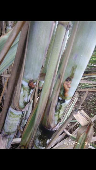 Vikram Kudale These excreta or fazz on the stem are nothing but a characteristic symptom of Sugarcane Borer infestation. If you dissect the stem, you may find larvae inside feeding on internal tissues. By clicking on the green hyperlink, you get the access to plantix library for comparison and control measures.