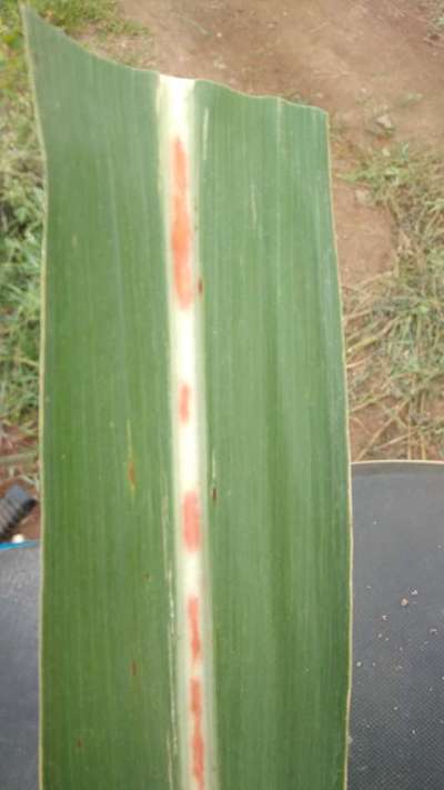 पानाच्या मध्यभागी लाल रेषा दिसत आहे व नंतर ते वाळून जातात सहा ते सात कांड्यावर आलेला आहे व नंतर ती पानं गळून जाऊ वाळून जात आहे तरी योग्य खते औषधे सुचवावी