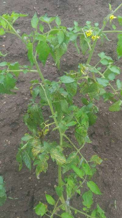 प्रफुल्ल भदाणे हे उशिरा येणारा करपा Tomato Late Blight आहे। करझेट + स्ट्रेप्टोसायक्लीन चि फवारणी घ्या। नवीन फुट चांगला होण्यासाठी ईसाबियण चि फवारणी घ्या