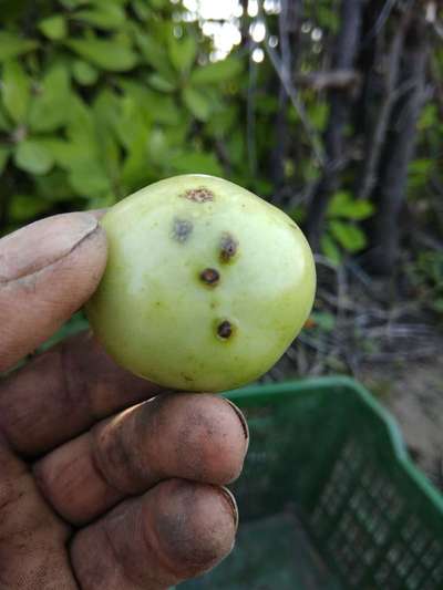 पानांवर तसेच फळावर सफेद आणि काळे डाग दिसतात आहे नवीन फुले. फळावर पण प्रादुर्भाव दिसून येतो आहे