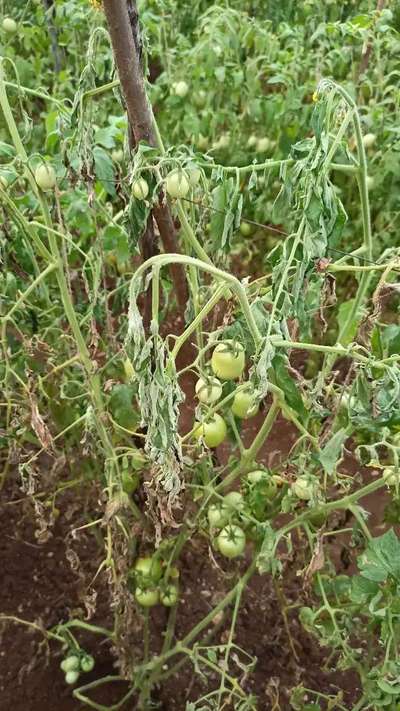Hello dear Vishwas Pisal how are you dear welcome to plantix community dear there are 2 main reasons that effect plant like this Fusarium Wilt Bacterial Wilt Dear apply aliette or any fostyle almonium in flood and pray coppor oxychloride on whole crop dear stay happy and keep posting in plantix 🙏