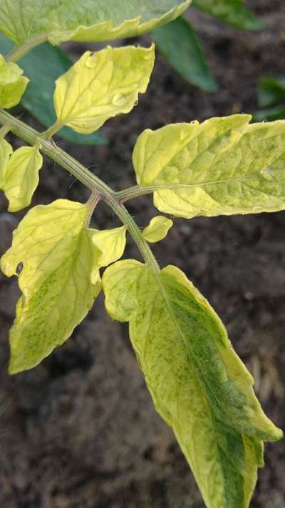 टमाटे पिकाचे पाणे पिवळसर पांढरी पडत आहेत