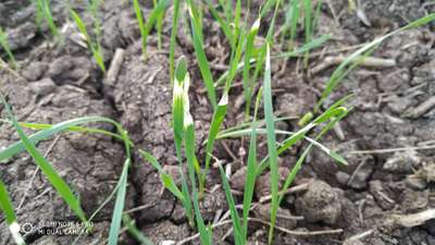 15 दिवसांचा गहू आहे । पांढरा चटा का पडला असेल ।काहि उपाय