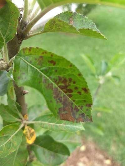 Olá!! Estas manchas podem ser indicativo do ataque do fungo causado da Sarna da Maçã . Clique sobre o link azul e com parece as fotos e a descrição dos sintomas. Nós diga se achou semelhante. Espero poder ajudar.