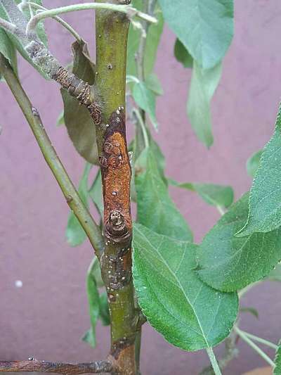 Olá, minha macieira parecia bem mas, começaram a aparecer manchas no caule e as folhas parecem murchar e algumas até secaram. Tento fazer o controle biológico sem venenos. Mas não sei mais o que fazer. Peço ajuda, por favor.