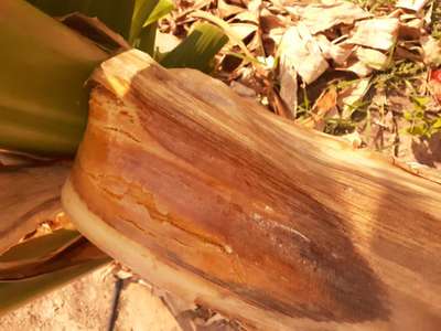 Podem ser de origem sistêmica User Mal-do-Panamá Moko da Bananeira Veja esses sintomas e compare com sua bananeira. Outros fatores também pode causar esses danos como deficiência nutricional de cálcio, potássio. Deficiência de Cálcio