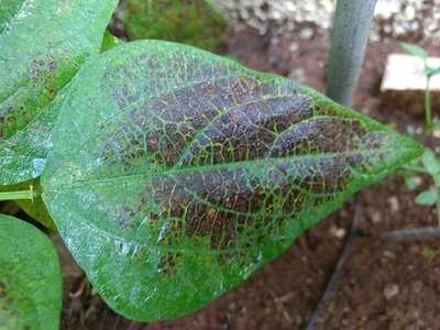 Gente, meu feijão está assim agora... É possível observar essas manchas no caule e na vagem. Procurei o que é mas não tive muito sucesso nem na identificação nem no tratamento. Alguém já viu isso?