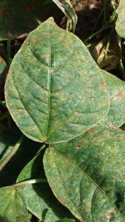 Gente, meu feijão está assim agora... É possível observar essas manchas no caule e na vagem. Procurei o que é mas não tive muito sucesso nem na identificação nem no tratamento. Alguém já viu isso?