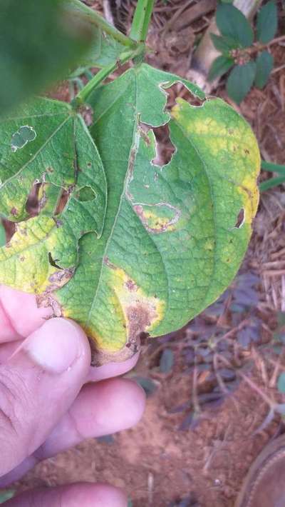 O pé de feijão esta com as folhas assim e esta morrendo em algumas partes.