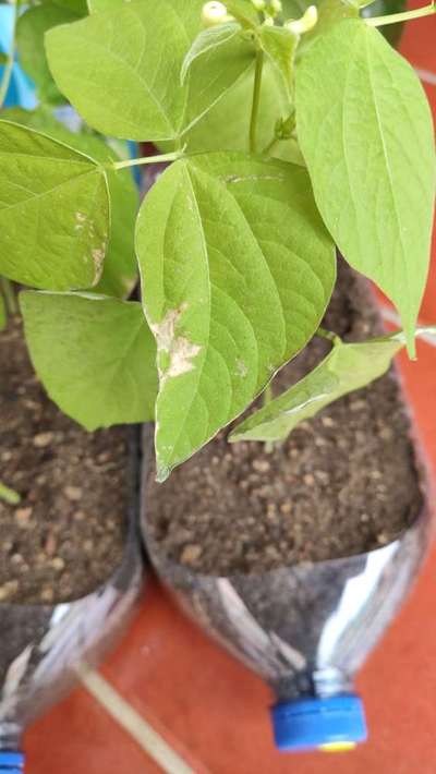 Saiba mais sobre o PlantixEstou a plantar feijão em garrafões de água e agora que estás começar a dar flor a folha está a ficar como na imagem.