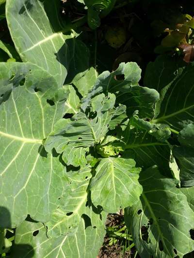 Atacando folhas de brócolis, jiló, repolho